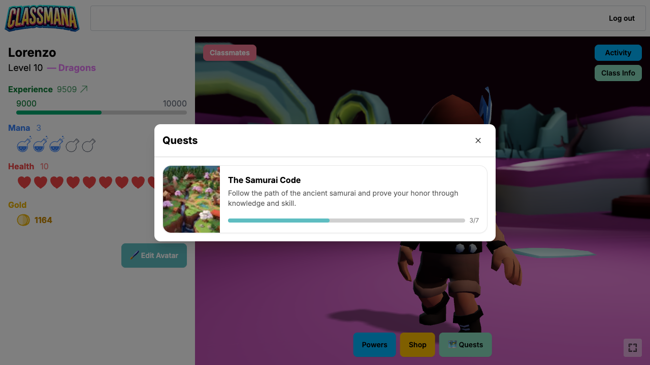 Quests sind Abenteuer, die dein Lehrer für dich erstellt. Jeder Quest ist eine visuelle Karte mit Zielen, die du abschließen kannst — wie Aufgaben, Quizzes und Geschichtsknoten. Du gehst durch die Karte in deinem eigenen Tempo, schaltest neue Ziele frei und verdienst Belohnungen auf dem Weg.