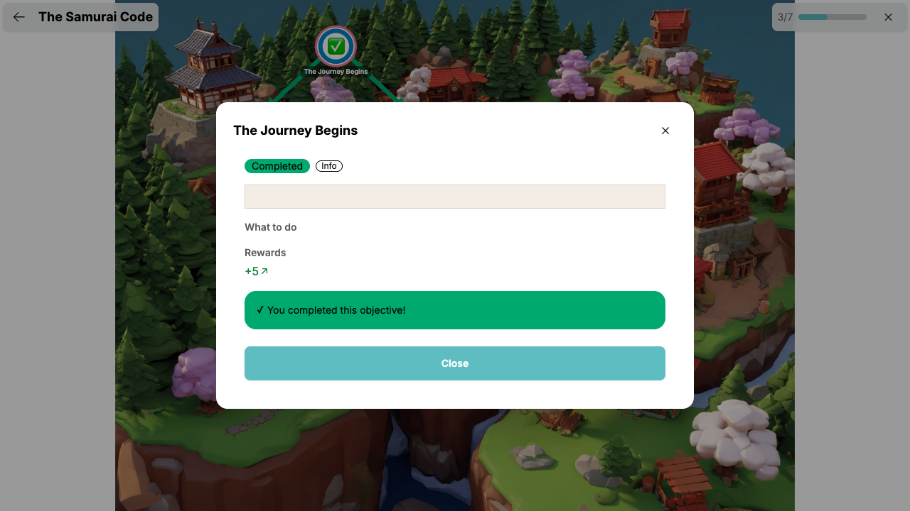 - Bestehst — Das Ziel ist abgeschlossen und du erhältst deine Belohnungen!